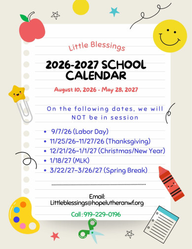 - Current Families, Hope Members, & Preschool Siblinings Registration begins February 16, 2026