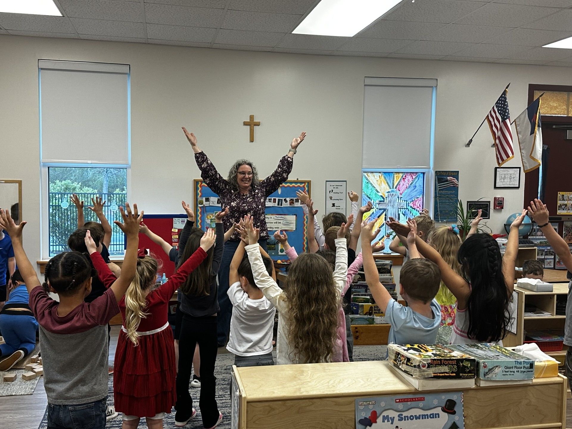 We focus on the whole child. Through hands-on learning, structured routines, and guided play, children develop early literacy and math skills, practice self-control, grow in independence, and learn how to follow directions and complete tasks. We aim to build confident, capable learners who are ready for kindergarten both academically and socially.